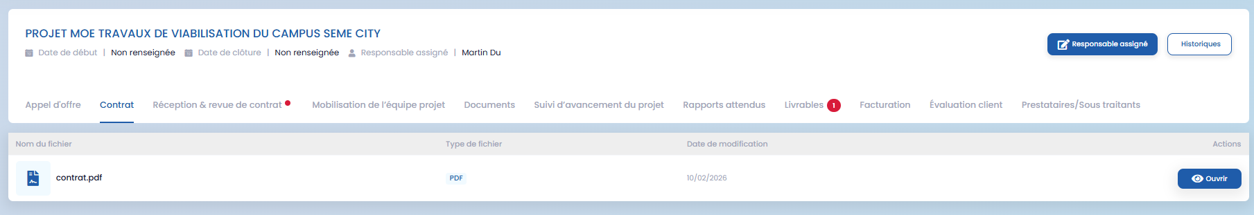 En cliquant sur un projet, vous accédez à l’ensemble de ses informations, notamment :