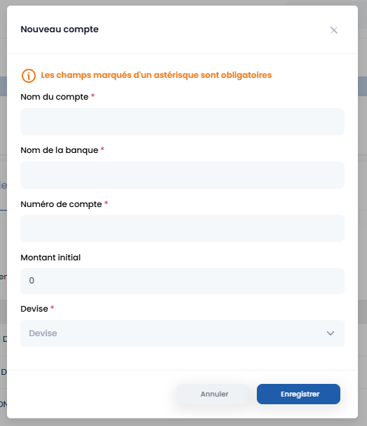 La section Comptes correspond aux différents comptes financiers et caisses dont dispose votre organisation.