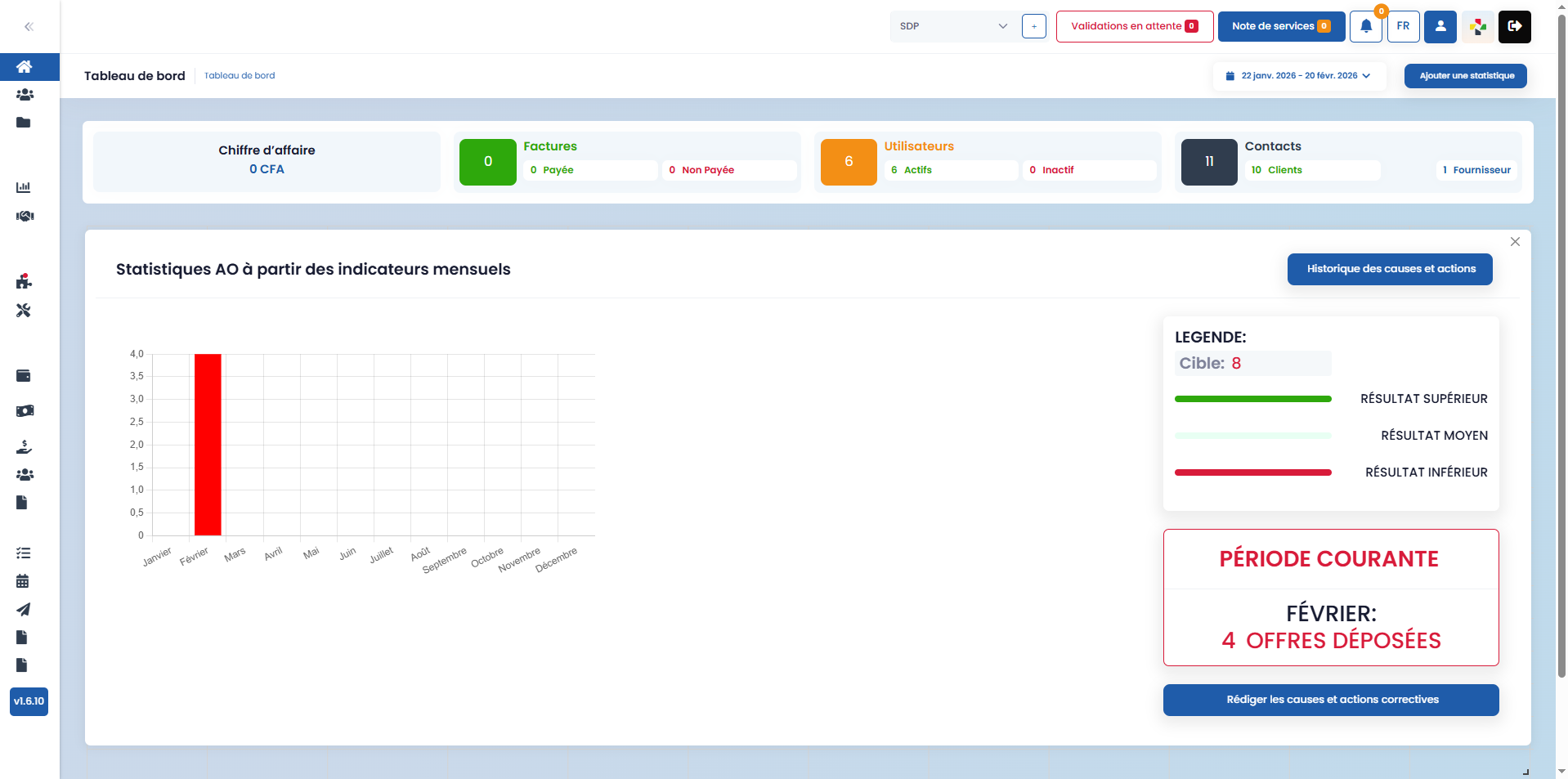 Le tableau de bord centralise les données clés afin de faciliter le suivi de vos performances et la prise de décision.