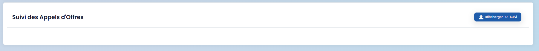 This section is dedicated to tracking ongoing and closed tenders. A "Download follow-up PDF" button is available to generate a summary document showing the progress status of your tenders.
