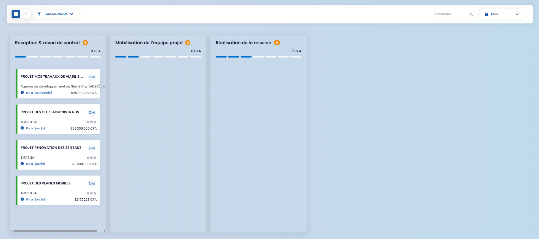 In grid view, each project evolves through three (03) main stages, between which you can move it: