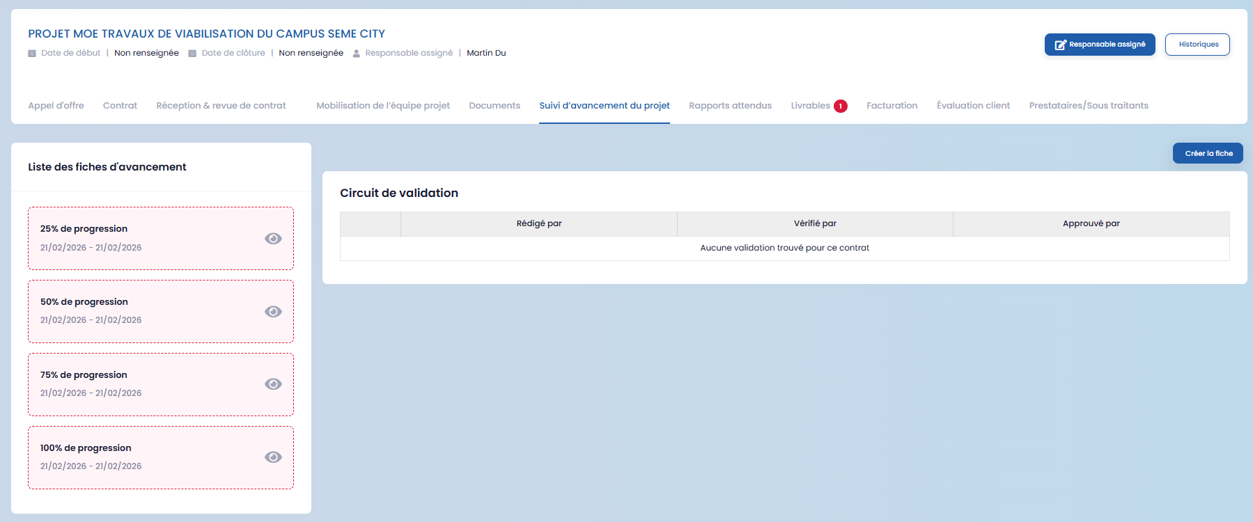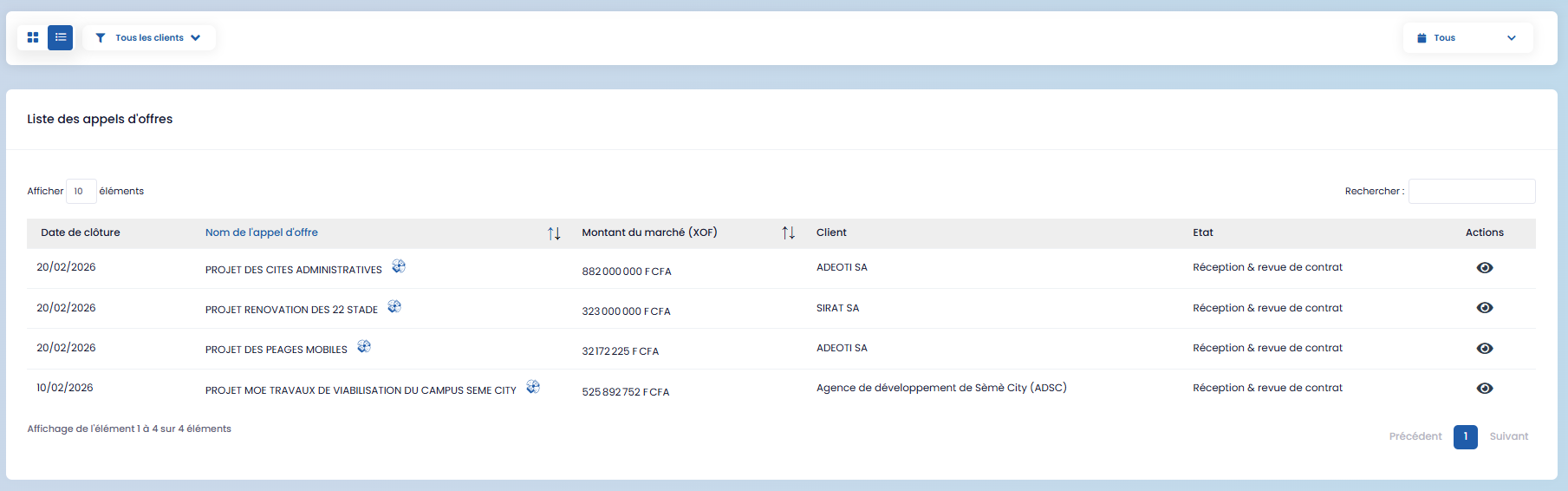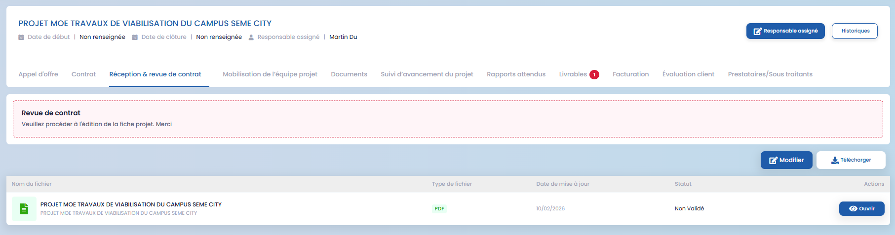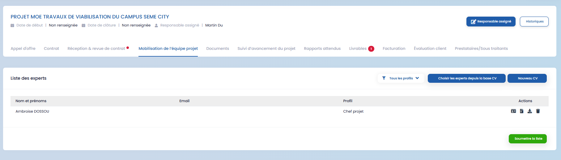 When a call for tenders is won, it automatically moves to the next stage in the GOP module. A project linked to this tender is then created, ensuring continuity between the commercial phase and the operational phase.