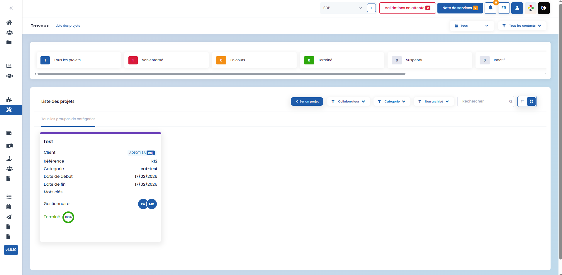 If no category matches your needs when creating a project, you can create a new one from the Settings, in the Projects section, by completing the dedicated form.