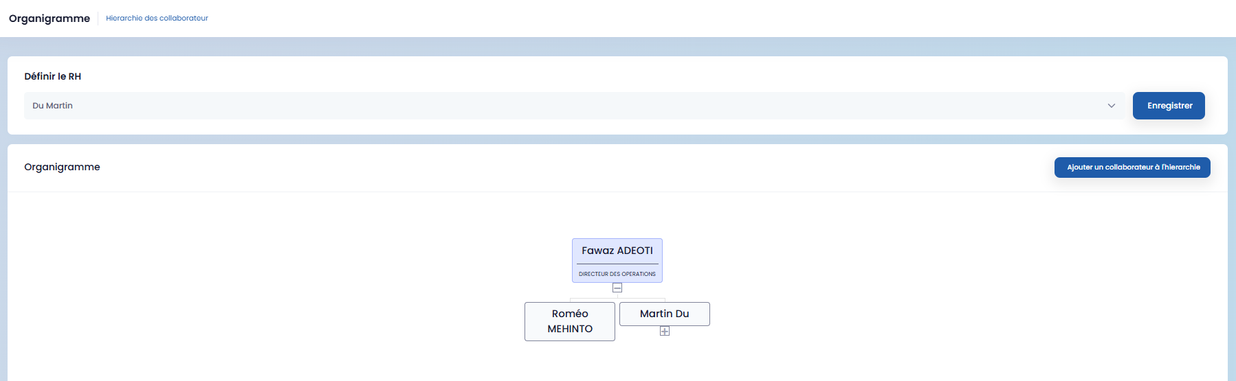 define the HR Manager via the dedicated field, then save using the "Save" button,
