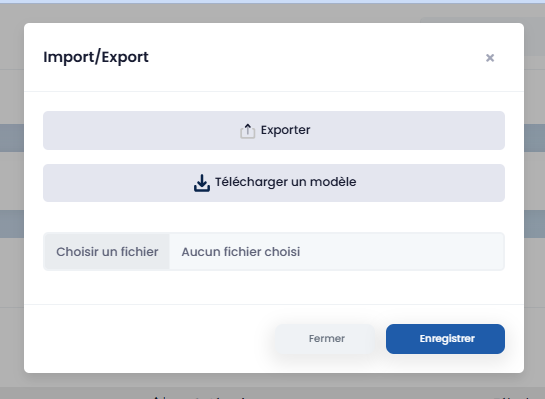 To simplify importing, a template is provided directly within the application. After activating the Import / Export feature, you can: