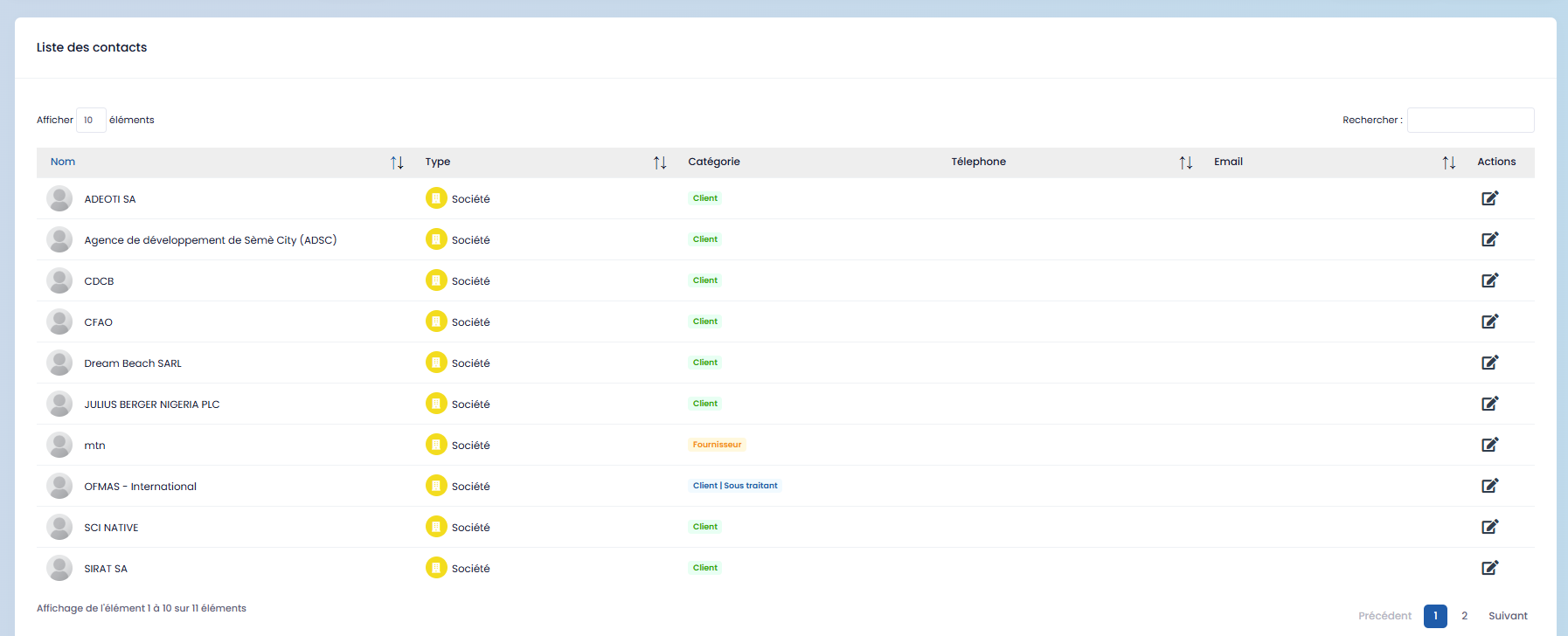 Each contact is accompanied by their personal and professional details, making daily tracking and management easier.